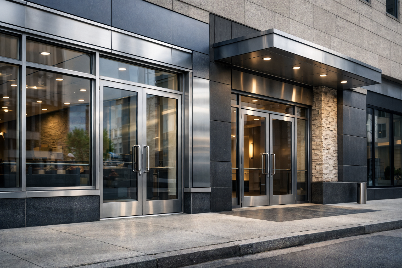 OIS also specializes in interior metal and glass installation. Beginning in 2020 we are pleased to offer off-site “Re-Fabrication” of mis-fabricated materials in our shop located 1-hour outside of Manhattan. We also offer off-site “Re-Glazing of Doors and Facade Panels. We have our own trucking service that can pick up the broken units and return them fully glazed within 3 days utilizing our off-site union trained shop personnel. OIS also specializes in prepping interior and exterior doors for a variety of hardware packages.